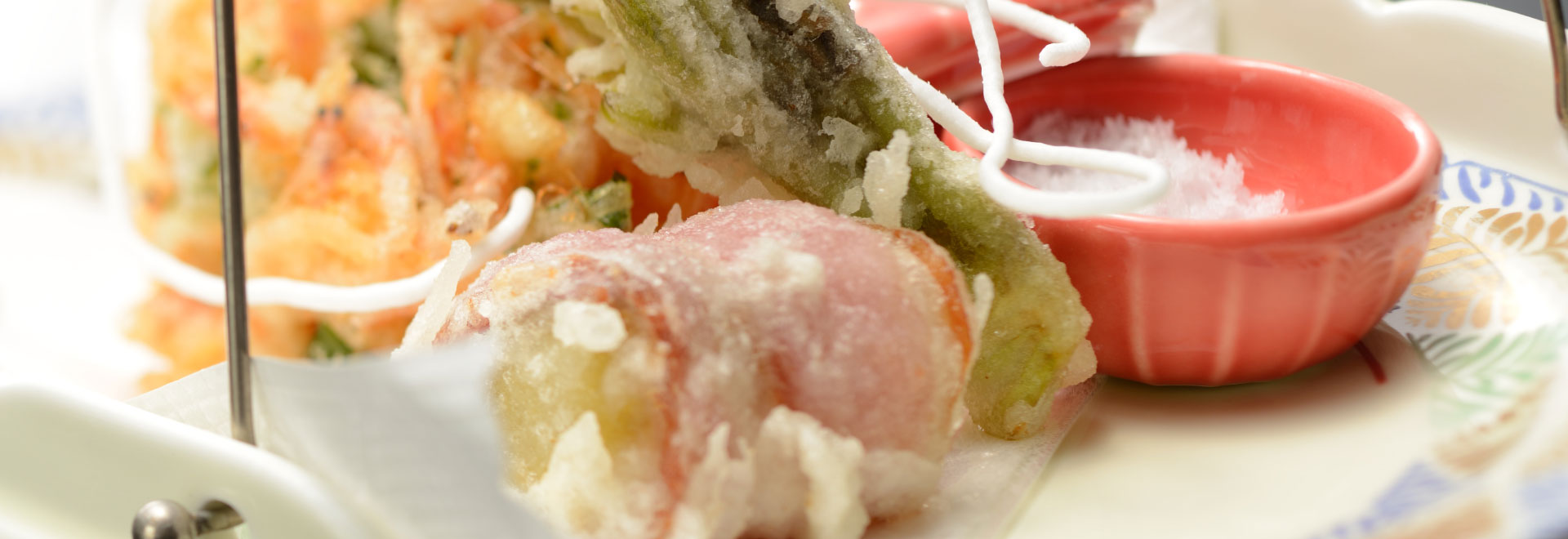 当館では、お食事の際に「かてもの」料理をご一緒にお出ししております。「かてもの」とは、米沢藩上杉鷹山公の命によって刊行された飢饉救済の手引書のことです。その書物の中に記されていた食物と調理法は、長い時を経て現在まで受け継がれ、郷土の味として生活のなかに根付いています。歴史と言い伝えが織りなす「かてもの」料理をどうぞお召し上がりください。
