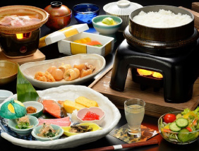 広縁のある和室10畳で、バス・トイレ付きのお部屋です。お食事は専用のプライベートダイニングをご用意いたしました。お部屋のお風呂は全室温泉です。赤湯温泉の「美肌の湯」をお部屋にいながら気兼ねなくお楽しみいただけます。